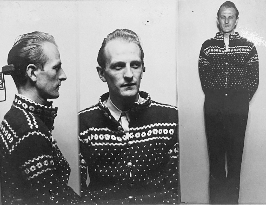 Kristen Gunneng, fotografert ved pågripelse i mai 1945. Foto: Politiet.