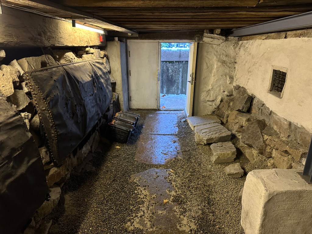 Journalist Sigrid Christoffersen rettet ryggen og gikk opp trappa der den siste torturcellen var, et bad, med badekar og vannklosett. Der var her isbadingen foregikk, om vinteren med snø og is og om sommeren i iskaldt vann. Der ble fangene dukket under til de ikke hadde pust igjen. Deretter sto ofte toalettet for tur, med lærstøvel i nakken.