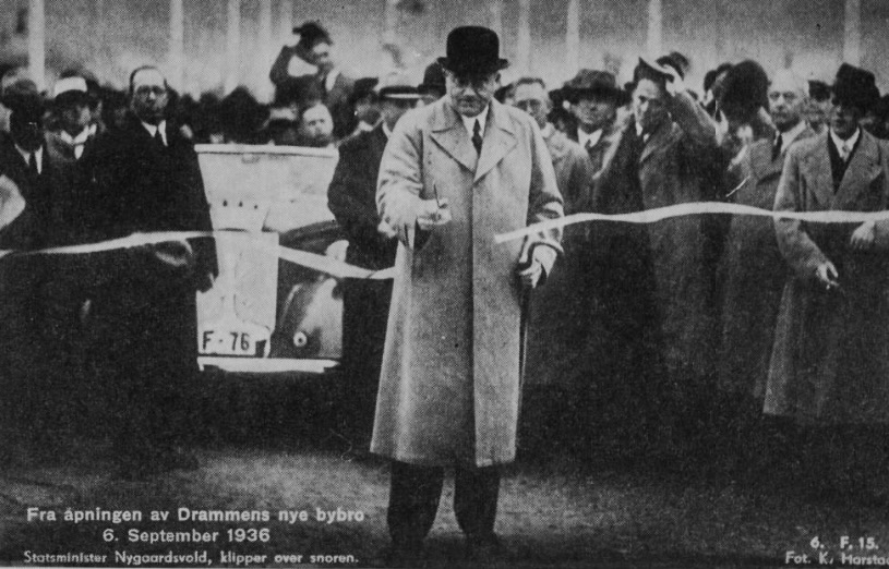 Jentemarken, 14. oktober 1929. I midten på bildet statuen av Jørgen Schwartz, «Randsfjordbanens far».