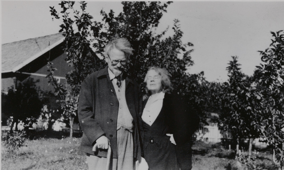 Leo Trotskij og hans kone Natalie fotografert på Sundby gård i Hurum. Rettssaken der han vitnet var lukket. Bildet er tatt i september 1936.