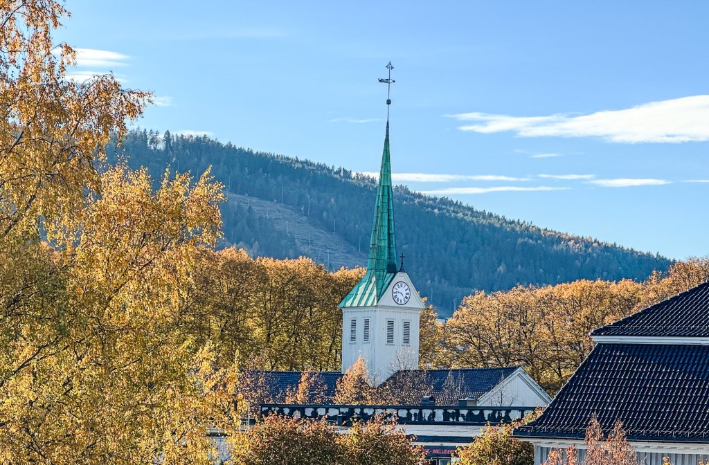 Panaroma med flere bilder satt sammen for å sette Drammensdalen i perspektiv.