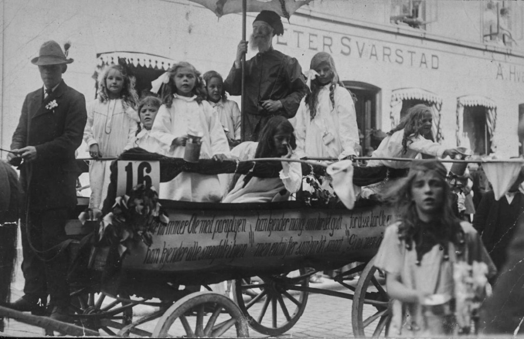 Skarpmoen hadde et skarpt blikk for gode motiver og han var ofte først ute. Det var angivelig han som tok det første pressefotografiet i Norge i 1903, og de eldste opptakene av norsk folkemusikk var det han som besørget, festet til voksrull. Jula 1901 var han i Drammen og tok dette bildet som kan få noen og hver i julestemning.