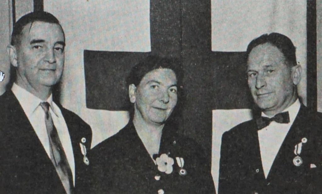 Anna Gislefoss, her fotografert i Røde Kors-sammenheng etter krigen, flankert av motstandslederen Ahlert Horn og Sverre Himberg.